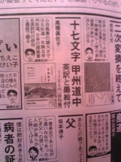 本日の毎日新聞に、以前からご紹介している出版仲間の高橋眞佐子さんの御本が掲載されました。