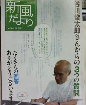 今日の記事は谷川俊太郎さんについて、ではなくて、 これは『新風舎だより』と言って多分新風舎から出版した人のみ投稿出来て、また頂ける雑誌だと思う のですが・・・・・(すみません、そういやその辺り伺ったと思いますが忘れてしまいました。)