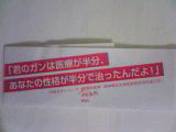 先生の読んだ感想→「いや、なかなか面白かったよ」(仮にも闘病記なのに、「面白かったよ」と主治医にコメントされるってのはどうなの~?