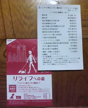 メッチャ明るいガン闘病記・リライフへの道』のご近所宣伝活動のご近所範囲を拡大して、犬友達の皆様方に、裏に推薦人の方々をプリントしたこのチラシを差し上げていたら今日で10枚なくなった。